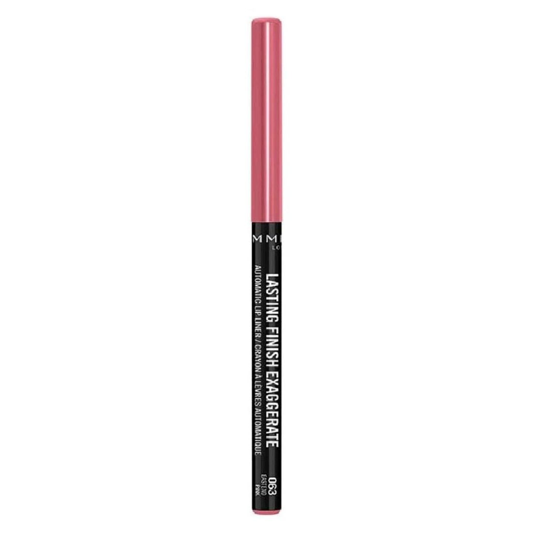 The Rimmel London Lasting Finish Exaggerate Automatic Lip Liner is a creamy, automatic twist-up lip liner that defines and shapes lips with precision. Its smooth formula glides on easily, providing long-lasting color and helping lipstick stay put while preventing feathering and smudging.