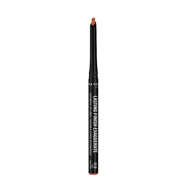 Lasting Finish Exaggerate Automatic Lip Liner from Rimmel. It delivers precisely defined lips and helps your lippie stay put for longer. The creamy formula in this liner pencil features a combo of waxes and oils that give a smooth and even application. The automatic twist-up format never needs sharpening and this long-wearing liner comes in a range of four stunning shades – so you’ll find the secret to your perfect pout. No exaggeration!