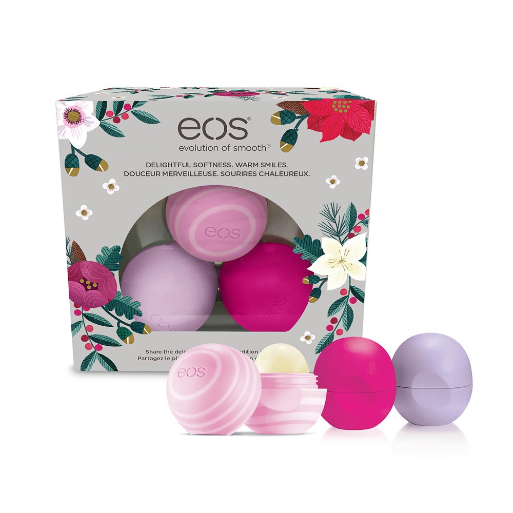 Celebrate the fall/winter season with the festive beauty of flowers, happiness and the delight of a Visibly Soft Honey Apple lip balm with it’s rich flavor. eos® lip balms enhanced by the essence of Passion Fruit and Wildberry flavors. They are packed with antioxidant-rich vitamin E, soothing shea butter and jojoba oil to keep your lips moist, soft and sensationally smooth. Gluten-free, and paraben & petrolatum-free.