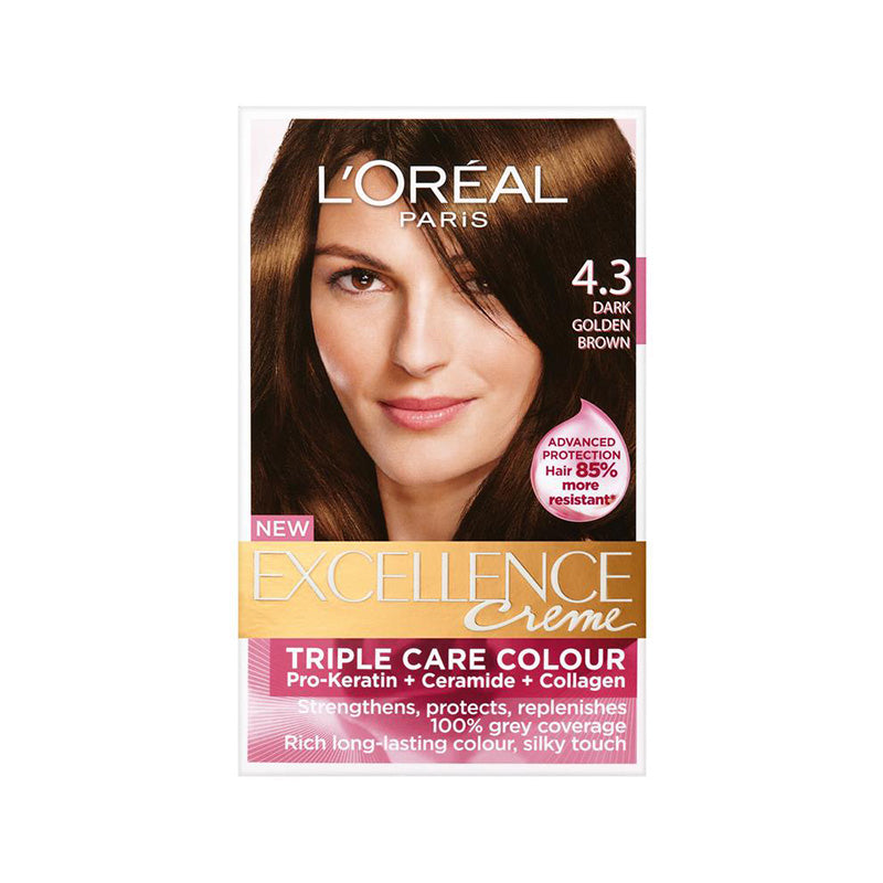 Keep dull hair at bay with L'Oréal Paris Excellence Crème. Over time, your hair loses vitality and your colour loses radiance, which is why this conditioning formula in the advanced triple protection excellence formula enriched with Pro Keratin, to help replenish hair and rejuvenate colour, Ceramide,to prtect the hair fibre and Collagen, which nourishes the hair and makes it look fuller and stronger. With up to 100% grey hair coverage. Hair feels healthy, silky and soft, whilst colour looks sensational - and not a grey in sight!